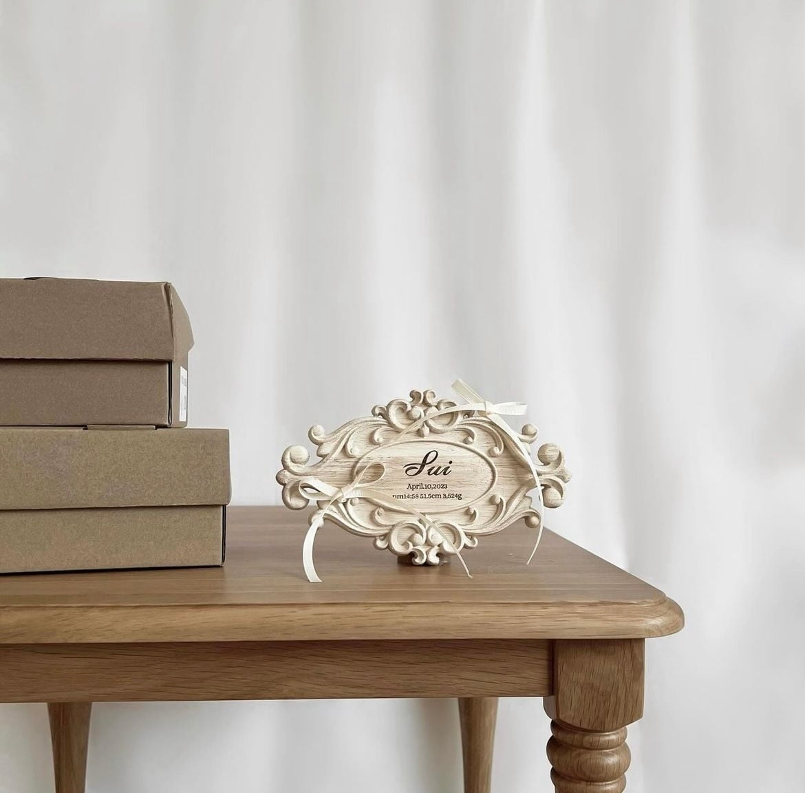 木の温もりと木掘りで書いた、天然木命名書はお子様が誕生した記念と生まれてきた赤ちゃんの健やかな成長を願うメッセージをずっと残しておける高級感と重厚感のあるおしゃれで素敵な温もりを感じる木の命名書(命名ボード)です